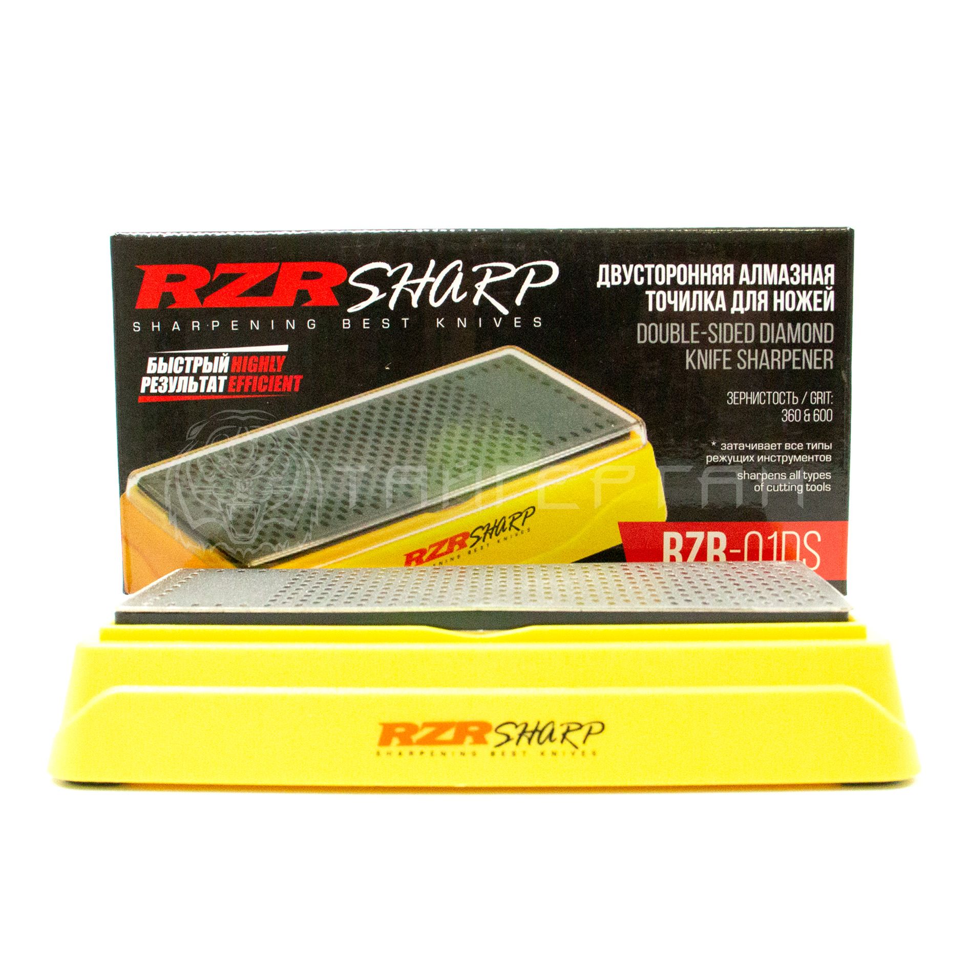 Инструмент для заточки и правки ножей с алмазным напылением RZR-01DS имеет две рабочие стороны - для последовательной грубой и мягкой обработки режущей кромки вашего ножа. Благодаря большой площади и уникальной дырчатой структуре поверхности абразивной пластины, собирающей накапливающуюся стружку, вам не понадобится много усилий для быстрого восстановления остроты клинка. Подставка изготовлена из упрочненного пластика ABS и снабжена противоскользящими ножками для облегчения рабочего процесса. Подходит для заточки и правки любых режущих инструментов. Зернистость 360 (40 мкм) и 600 (35 мкм)* Размер рабочей поверхности 152 х 61 х 5 мм * Зернистость стороны со сплошным покрыием 360 грит, стороны с овальными ячейками 600 грит (-/-)