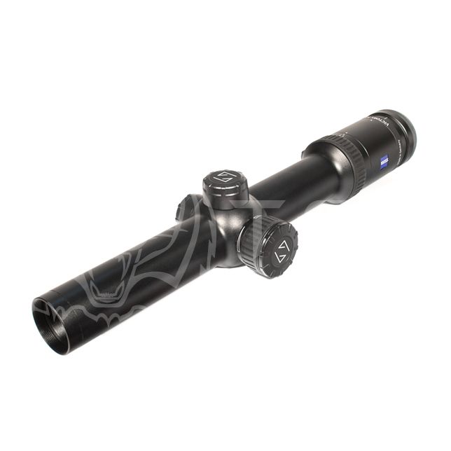 Прицельная сетка у прицелов Carl Zeiss Victory HT расположена во второй фокальной плоскости (в фокальной плоскости окуляра) (на 2м плане). Это значит, что размер точки и перекрестия не изменяется для стрелка с изменением увеличения, то есть всегда остаётся предельно малым, чтобы не загораживать цель и не отвлекать стрелка лишней засветкой. При увеличении 4 крата размер точки на дистанции 100 м составляет 16,5 мм, соответственно на 50 м около 8 мм! Это очень маленькая и чрезвычайно удобная марка. Для сравнения можно сказать, что самая маленькая марка у коллиматорных прицелов составляет 1 угловую минуту, то есть около 29 мм на 100м! То есть этот прицел обладая преимуществами коллиматора, позволяет получить почти вдвое большую точность прицеливания!
