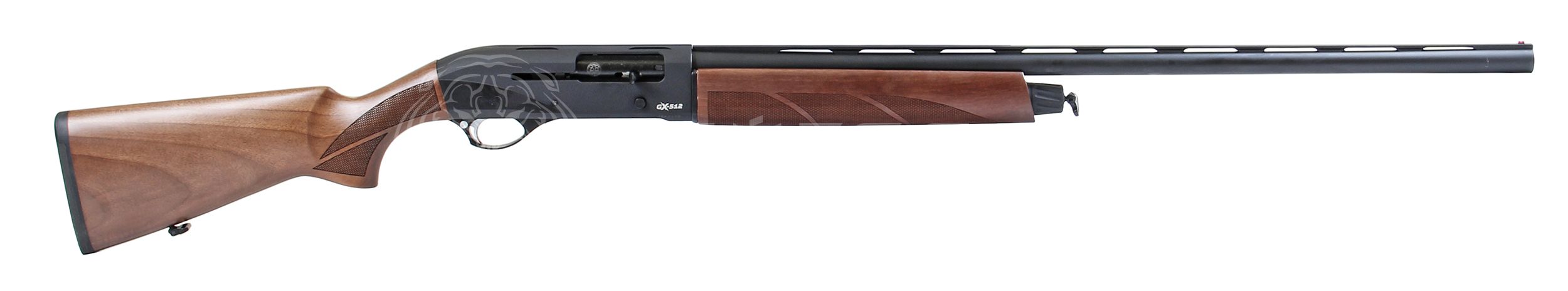 Гладкоствольное ружье HUGLU GX 512 Black Wood с полуавтоматической газоотводной системой перезарядки. Коробка выполнена из анодированного алюминиевого сплава с черным матовым покрытием.