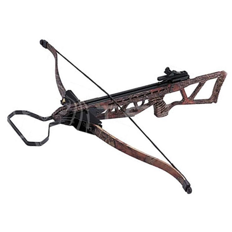 Арбалет MK-180 TC - арбалет винтовочного типа. Рекурсивные композитные плечи складываются к корпусу, что очень удобно для транспортировки, прогулок по лесу и развлечений на природе. Корпус и приклад цвета "темный камуляж" изготовлены из полипропилена, направляющая вставка из алюминия. Оснащён автоматическим предохранителем. Прицельная дальность стрельбы 25 метров.