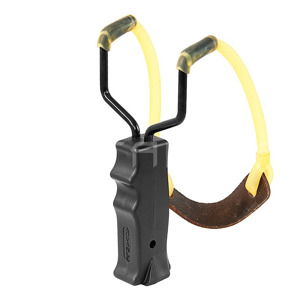 Корпус рогатки изготовлен из прочного металла, который практически невозможно повредить. Также она имеет удобную и грубую рукоятку из пластика, которая надёжно позволяет зафиксировать оружие в руке. Также она уже оснащена прочной резинкой для стрельбы и кожаным седлом.