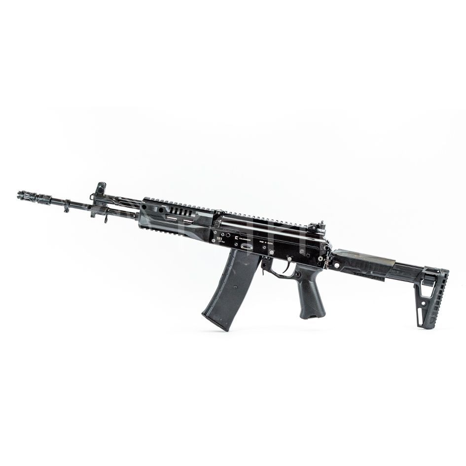 Второе поколение охотничьего самозарядного карабина TR3 под патрон 7,62х39. Карабин разработан на базе автомата Калашникова АК-15 и имеет с ним полное внешнее сходство. Карабин, сохранив фирменные черты оружия Калашникова, приобрел улучшенную эргономику и совместимость с современными прицельными комплексами. Назначение: учебно-тренировочная стрельба, охота. Основные отличия модели от первого поколения: Складной регулируемый приклад АК-ЭВО. Вес комплекта приклада - 410 грамм, на 140 грамм меньше первой версии Механические прицельные приспособления с новым диоптрическим целиком Новая рукоятка с пеналом, объединённая с предохранительной скобой Общие особенности модели TR3: надежная газоотводная автоматика хромированный канал ствола и патронник «вывешенное» цевье с планками Пикатинни, защищающее ствол от внешних нагрузок съемный высокоэффективный дульный тормоз-компенсатор планка Пикатинни на крышке ствольной коробки для установки современных прицельных комплексов эргономичный предохранитель с площадкой под указательный палец возможно применение магазинов увеличенной емкости для участия в спортивных соревнованиях (-/-)