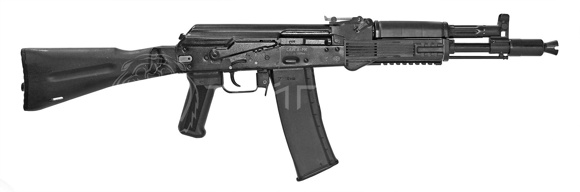 Самозарядный карабин Сайга-МК 223Rem исполнение 03 разработан на базе 5,56 мм укороченного автомата Калашникова АК102. Карабин использует проверенную временем надежную газоотводную автоматику с поворотным затвором и прочную стальную ствольную коробку, и допускает стрельбу только одиночными выстрелами.