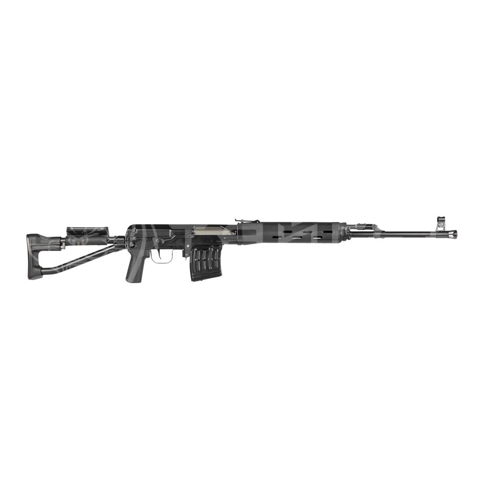 Разработан на базе снайперской винтовки Драгунова СВДС и максимально унифицирован с ней. Назначение: учебно-тренировочная стрельба, охота. надежная газоотводная автоматика хромированный канал ствола и патронник эффективный несъемный щелевой пламегаситель шаг нарезов оптимизирован под применение охотничьих патронов 7,62х54R пистолетная рукоятка, ложа и цевье из ударопрочного полимера складной металлический приклад с полимерным затылком съемная щека на прикладе для удобства стрельбы с оптическим прицелом Механические прицельные приспособления, разметка планки аутентична боевому аналогу – 1200 метров боковая планка для установки оптических прицелов и коллиматорных прицелов Шаг нарезов – 320 мм (-/-)