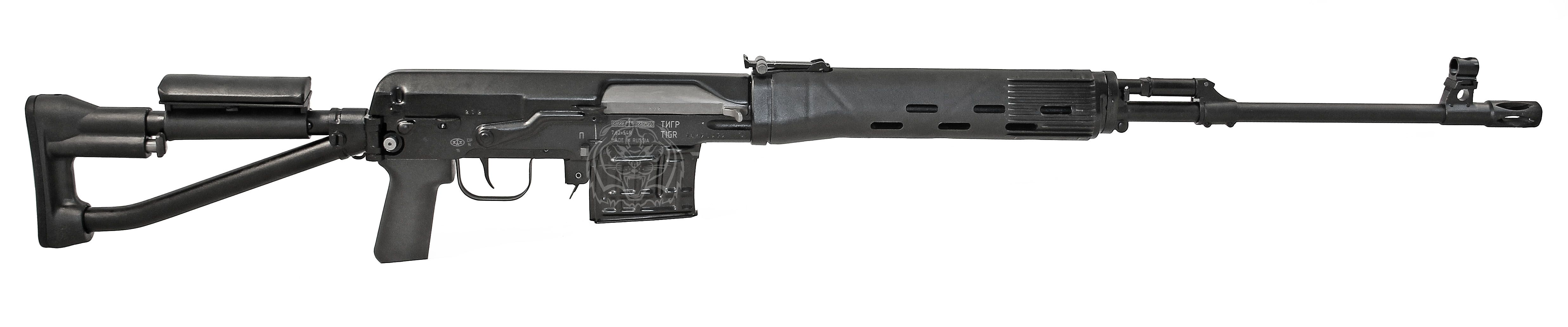 Самозарядные охотничьи карабины «Тигр» предназначены для охоты на крупного и среднего зверя в различных климатических условиях. Карабины созданы на базе широко известной снайперской винтовки Драгунова СВД и отличаются повышенной кучностью стрельбы.