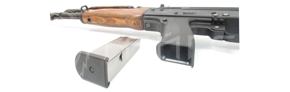 - При откате за счет энергии отдачи затворной рамы с затвором назад отпирается канал ствола,гильза извлекается из патронника и при взаимодействии с выступом отражателя выбрасывается из ствольной коробки, курок разворачивается и входит в зацепление с шепталом.