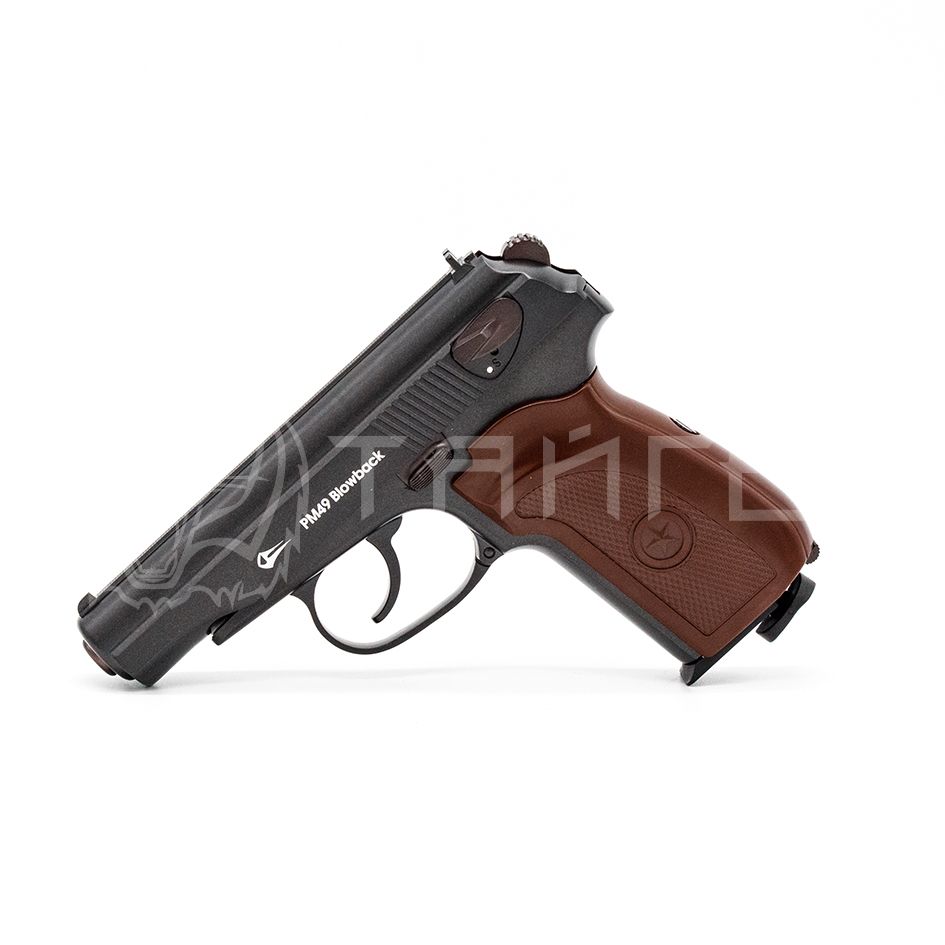 Пневматический пистолет PM-49 от компании Borner внешне копирует пистолет Макарова (ПМ). В качестве боеприпасов он использует металлические шарики калибра 4,5 мм, а в качестве источника энергии - 12-граммовые баллончики с углекислым газом. Предлагаемая версия, в отличие от базового исполнения, оснащена системой Blowback, имитирующей движение затвора при выстреле. Ударно-спусковой механизм - двойного действия, курок можно взвести либо непосредственным воздействием, либо перемещением затвора, либо нажатием на спусковой крючок. Прицельные приспособления - целик и мушка. Все основные детали пистолета Борнер ПМ49 Блоубэк выполнены из металла, накладка на рукоять пластиковая. Магазин полноразмерный, с отсеками для баллончика и боеприпасов, его вместимость - 18 шариков. Имеется флажковый предохранитель. (-/-)