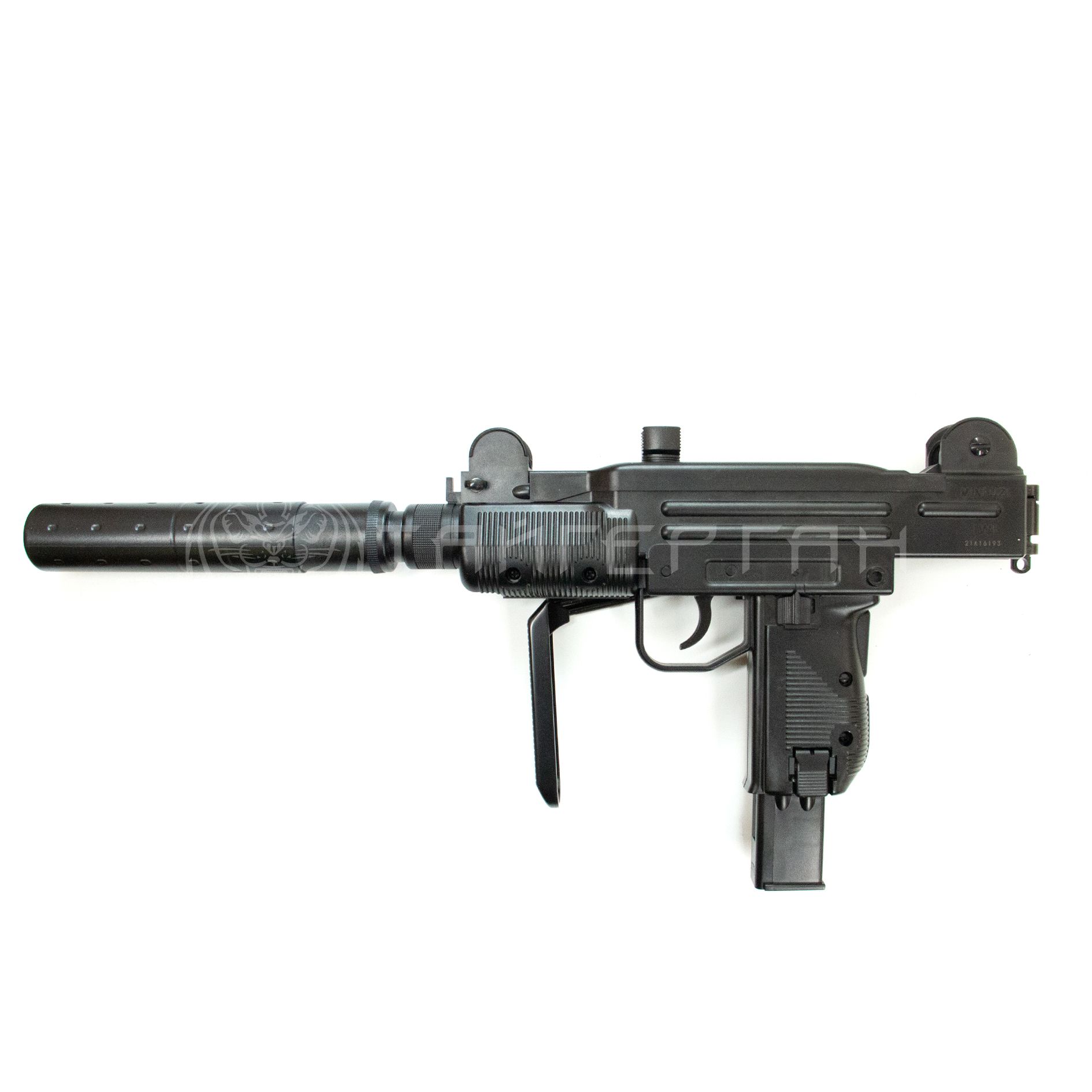 Пистолет-пулемет комплектуется имитатором глушителя, изготовленным из пластика, а также инструкцией на русском языке.