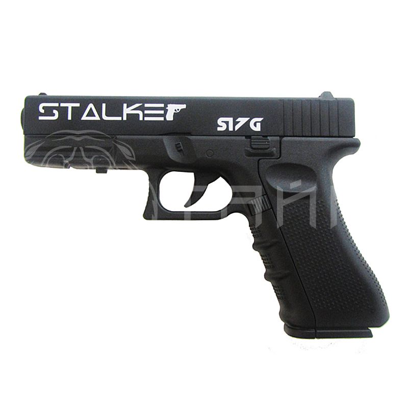 В качестве материала для изготовления затвора пневматического пистолета Stalker S17G используется высокопрочный металл, для производства рамы – износостойкий пластик. Пистолет крайне компактен и легок: его длина составляет 190 мм, а вес – всего 500 грамм. Благодаря этому Stalker S17G удобно носить с собой; кроме того, он станет отличным оружием для получения первых навыков стрельбы, равно как окажется весьма удобным для опытных стрелков. Являясь конструктивным аналогом Glock17, этот пистолет работает на пневматической системе выталкивания пули из ствола при помощи сжатого воздуха. Он предназначен для учебной и спортивной стрельбы по мишеням, также подойдет для развлекательной стрельбы. Ударно-спусковая система Stalker S17G – полуавтоматическая, в роли снарядов выступают стальные шарики. Для заправки пистолета используются разовые двенадцатиграммовые баллончики CO2. В магазин вмещается 13+1 стальных шариков. Для обеспечения безопасности стрельбы пистолет снабжен предохранителем. Скорость пули, вылетающей из ствола данного пневматического пистолета, составляет до 3 Дж. Таким образом, для действующего российского законодательства Stalker S17G не является оружием. Это дает возможность приобретать его без получения разрешения на хранение и использование оружия в правоохранительных органах. Скорость, развиваемая пулей после вылета из ствола Stalker S17G, может составлять до 120 метров в секунду. Размер опасной дистанции оценивается в 205 метров. В комплекте с пистолетом поставляется один магазин.