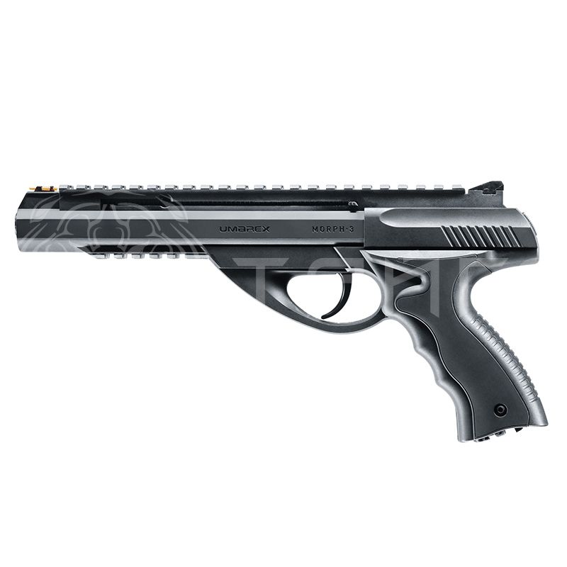 Скорость пули составляет - 130 м/сек. Данная модель оснащена нерегулируемыми прицельными приспособлениями, такими как мушка и целик. Мушка имеет светособирательные нити, которые бывают различных цветов. По стволу сверху проходит планка Пикаттини, благодаря чему на ней можно разместить климаторный или оптический прицел. Чтобы можно было установить фонарик или лазерный целеуказатель возле спусковой скобы размещена еще одна планка. Предохранитель размещается на рамке пистолета с правой стороны (это маленький выключатель который имеет два положения). Выстрели из этого пистолета Umarex Morph, производятся только с помощью самовзвода