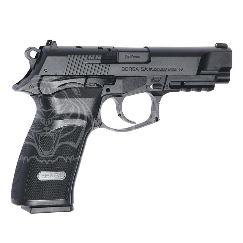 Реплика пистолета Bersa Thunder 9 PRO. Это легчайший полноразмерный полуавтоматический пистолет с эргономичным дизайном, производимый по лицензии аргентинской компании Bersa. Стрельба самовзводом с высокой скоростью, планка "Пикатинни" под стволом для крепления фонаря или ЛЦУ. При выстреле производит звук, напоминающий хлопок при открывании бутылки шампанского. На громкий звук огнестрельного выстрела он не похож.