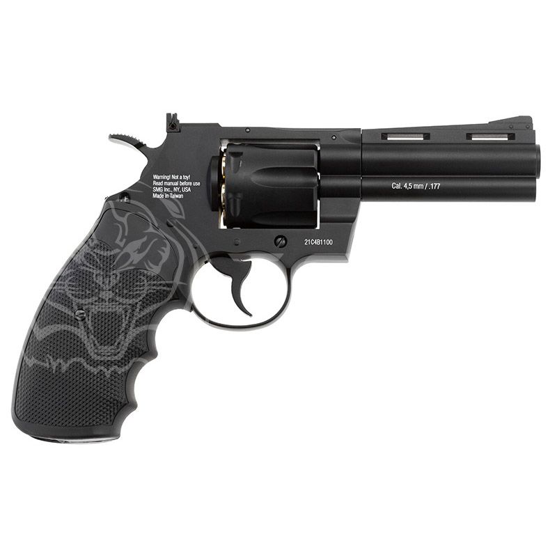 Револьвер пневматический Gletcher CLT B4 оснащен скрытым предохранителем, блокирующим курок. Ударно-спусковой механизм двойного действия (Double Action) обеспечивает стрельбу как самовзводом, так и с предварительным взведением курка. Рукоять с резиновыми накладками обеспечивает комфортное удержание при стрельбе. Целик регулируемый. Скрытый поджимной винт баллона обеспечивает большую визуальную схожесть с оригиналом. Фальшпатроны увеличивают реалистичность обращения с револьвером. Откидывающийся барабан позволяет отработать процесс заряжания револьвера и извлечения «стреляных гильз».