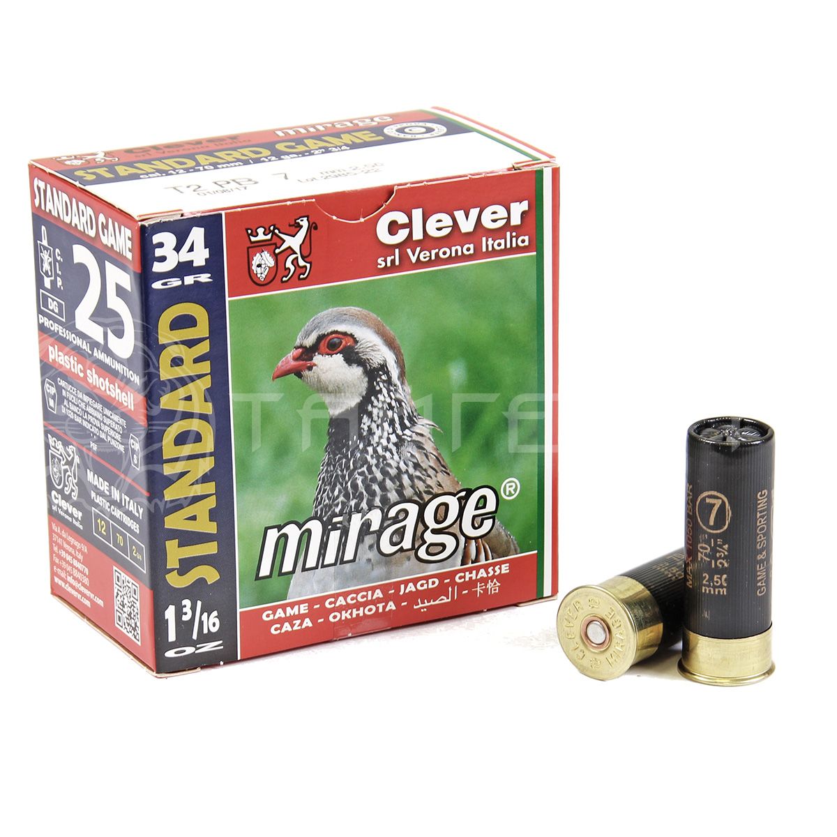 Патрон 12/70 №7 34г Mirage T2 Standard Game Clever (25/250)
