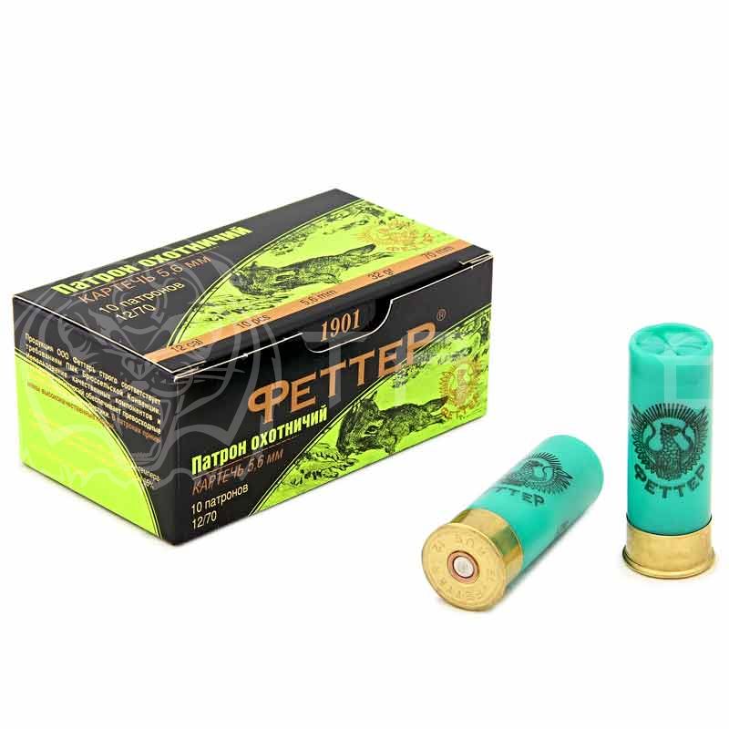 Этот патрон предназначен для отстрела рыси и косули, а также для дальнего выстрела на гусиной охоте. Обладает кучностью до 75-80% на дистанции 35 м. и отличной резкостью боя. Благодаря специальной конструкции патрона, при которой картечь диаметра 5.6 мм. уложена в пыж-контейнер, вы можете с успехом его использовать без ограничений при стрельбе из ружей, имеющих дульные сужения. Наилучшие результаты получаются при стрельбе из ружей, имеющих дульные сужения 0.75 мм. и 0.5 мм. "получок".