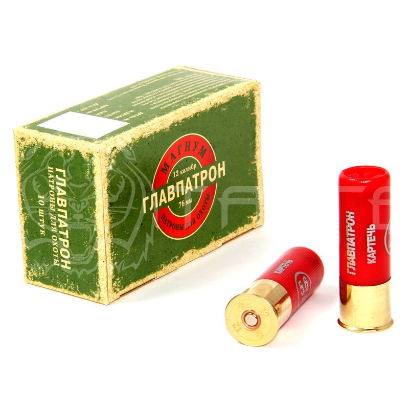 Магнум - патрон 12/16/76 с навеской картечи 46 гр. Патроны снаряжаются картечью 5,6 мм. Пыж-контейнер полиэтиленовый: H10 - Н19. Способ закрытия гильзы - звезда. Упаковка - 10/200 шт. Применение пороха M92S обеспечивает высокие скорости дроби и картечи: V1 от 395 до 415 м/сек. Таким патроном можно уверенно стрелять на дистанциях 50 – 60 метров.
