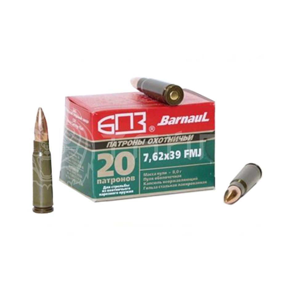 Патрон спортивно-охотничий для нарезного оружия 7,62*39 HP (экспансивная пуля). Лакированная гильза.