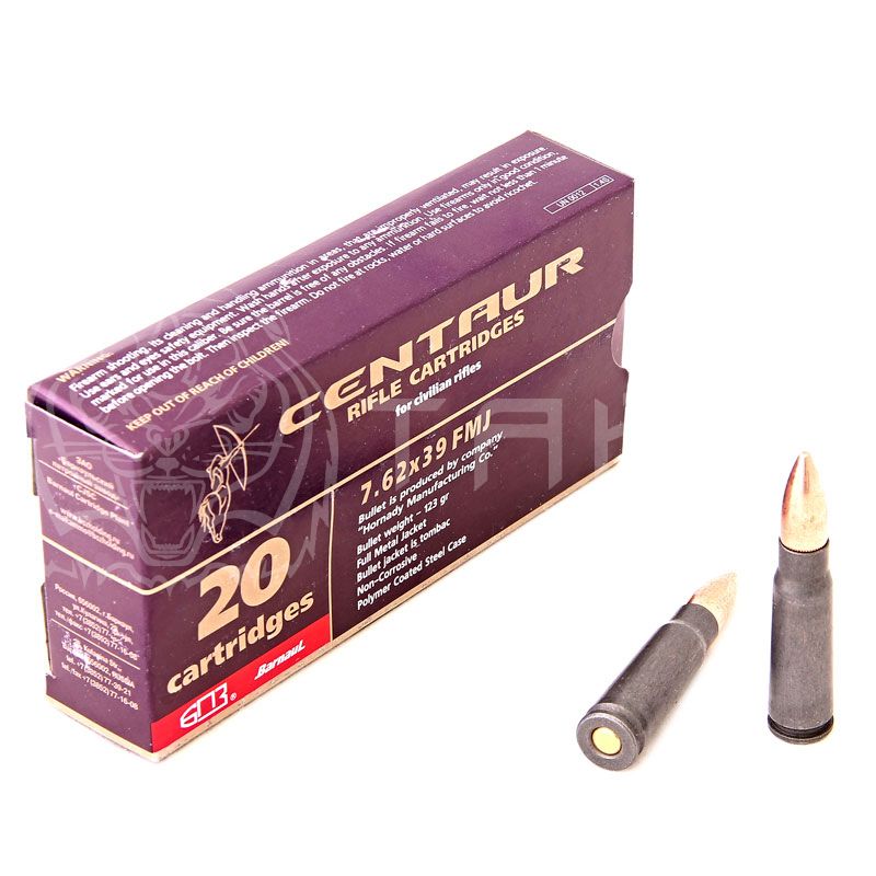 Патрон 7,62х39 "Кентавр" оболочечная пуля производства "Hornady Manufacturing Co" 8.0 гр, гильза с полимерным покрытием.
