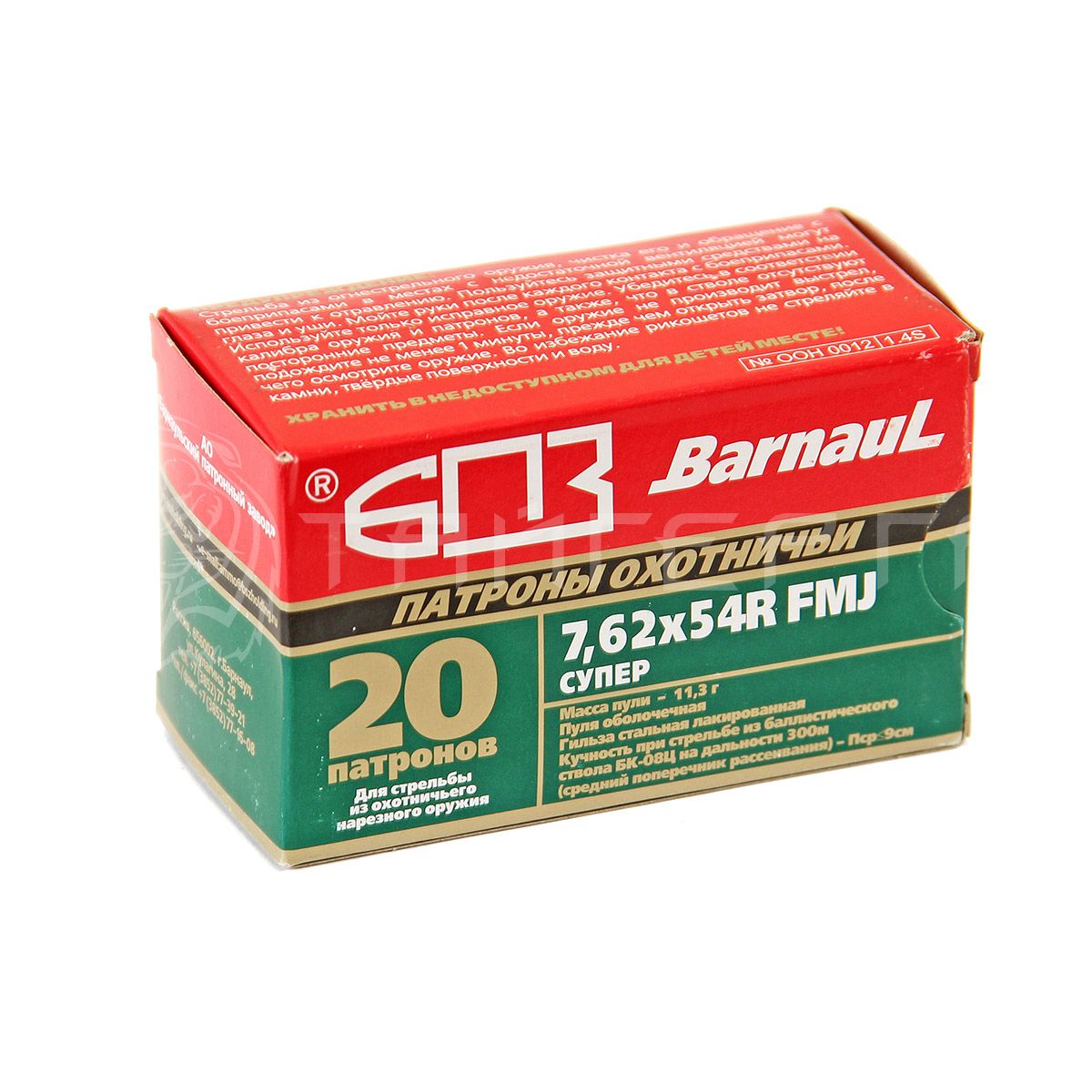 Патрон 7,62х54 БПЗ FMJ Супер 11,3г/174гр об. лак. гильза (20шт)