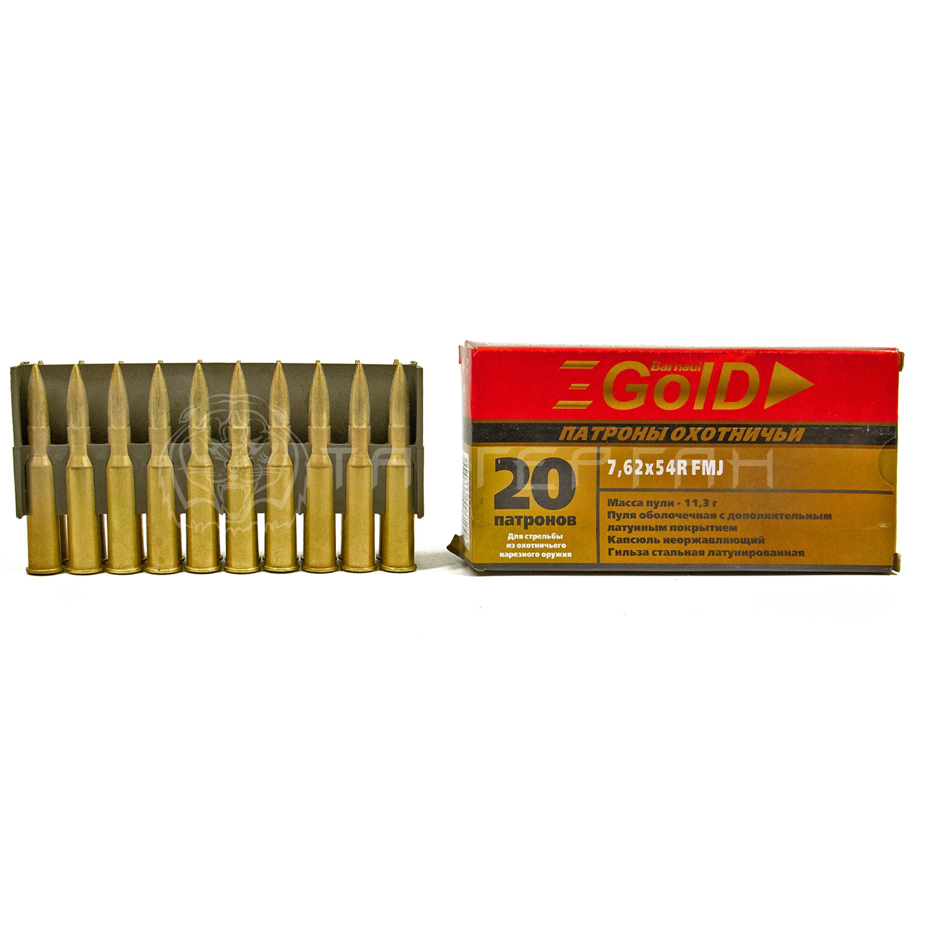 Патрон 7,62х54 БПЗ Gold FMJ 11,3г/174гр об. лат. гильза (20шт)