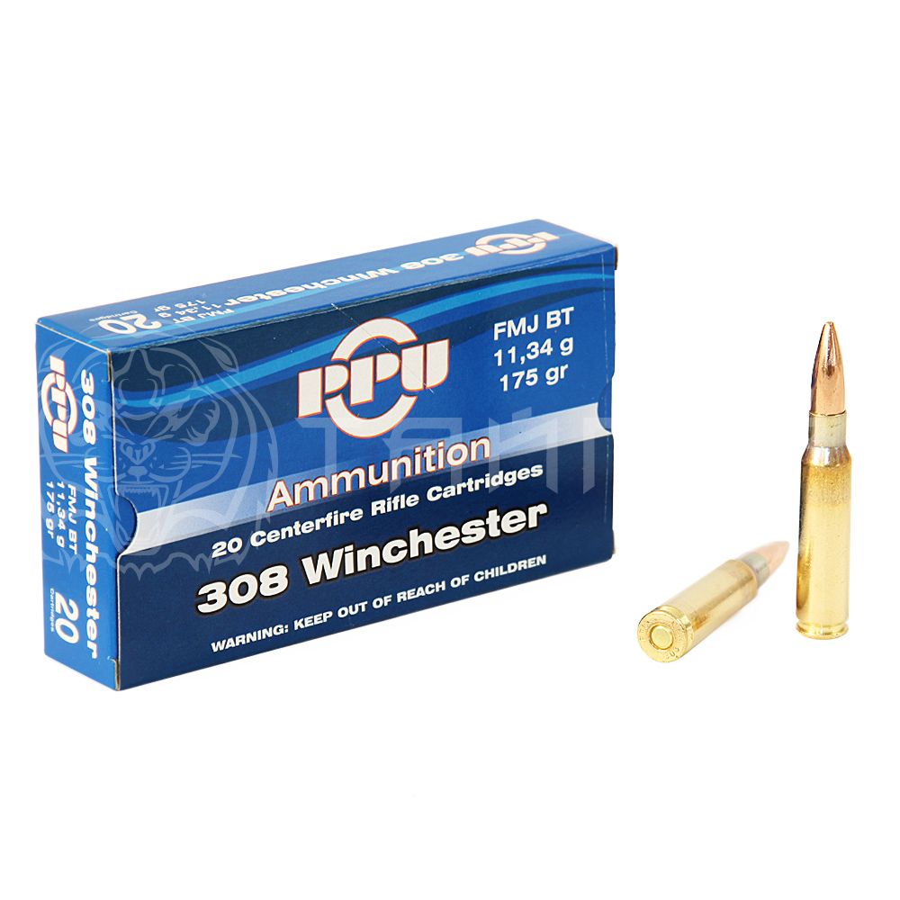 Патрон PPU .308Win с типом пули Full Metall Jacket - оболоченная, модель В-366.