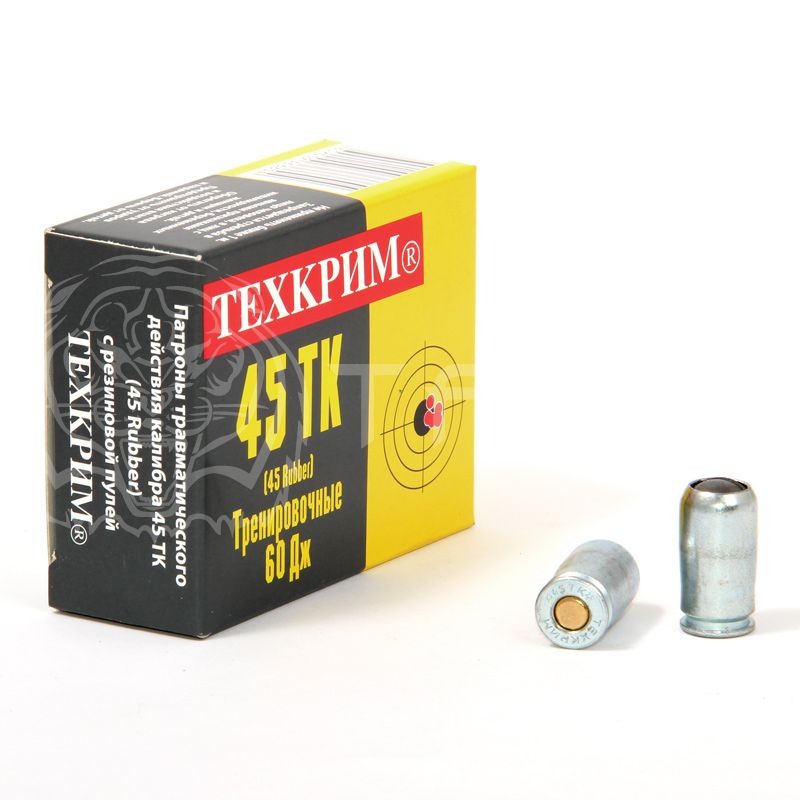 Патрон травматический калибра 45 ТК (Rubber) с резиновой пулей используется в качестве патронов травматического действия при стрельбе из пистолетов модели MP-80-13T и другого гражданского оружия калибра 45 Rubber (45 ТК), обеспечивающего при стрельбе дульную энергию, не превышающую 60 Дж.