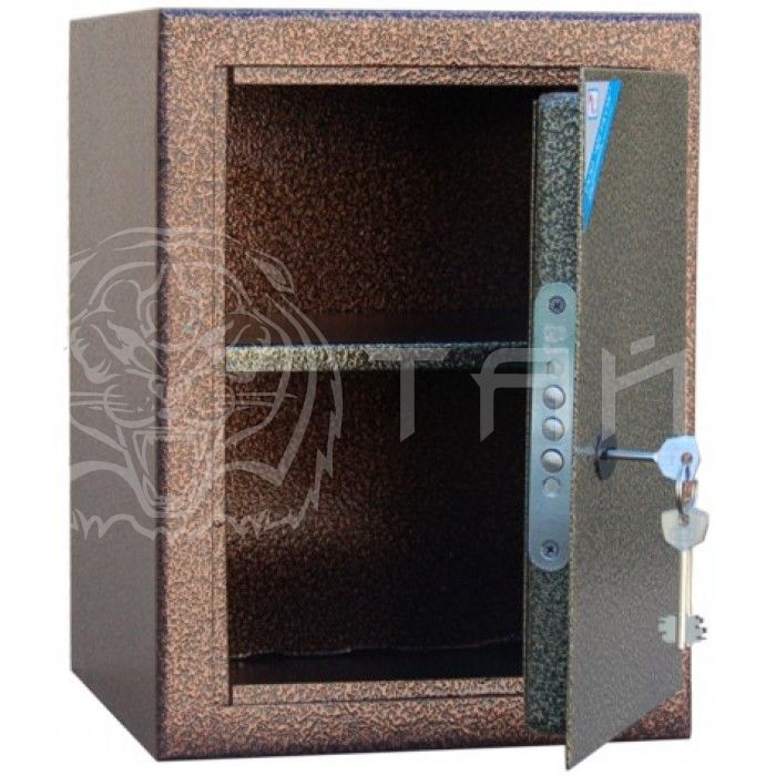 Корпус шкафа толщиной 3 мм, дверь толщиной 3 мм. На задней стенке корпуса расположены отверстия для крепления. Шкаф односекционный, оснащен отделением под патроны. В двери установлен ключевой 8-ми сувальдный замок ЗАО «Про-Сам» г. Рязань или аналогичный замок другого производителя.